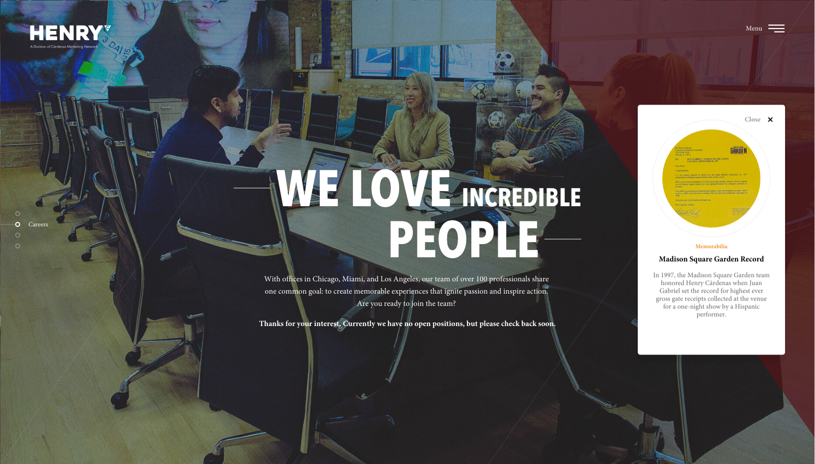 I led the development of the website for a new multicultural marketing agency, overseeing every aspect of the process, from vendor selection to launch. The site is meant to convey the spirit of "cultural vibrancy" at the heart of the agency's services. Special easter eggs included archival materials from the parent company's many years in live tour production.